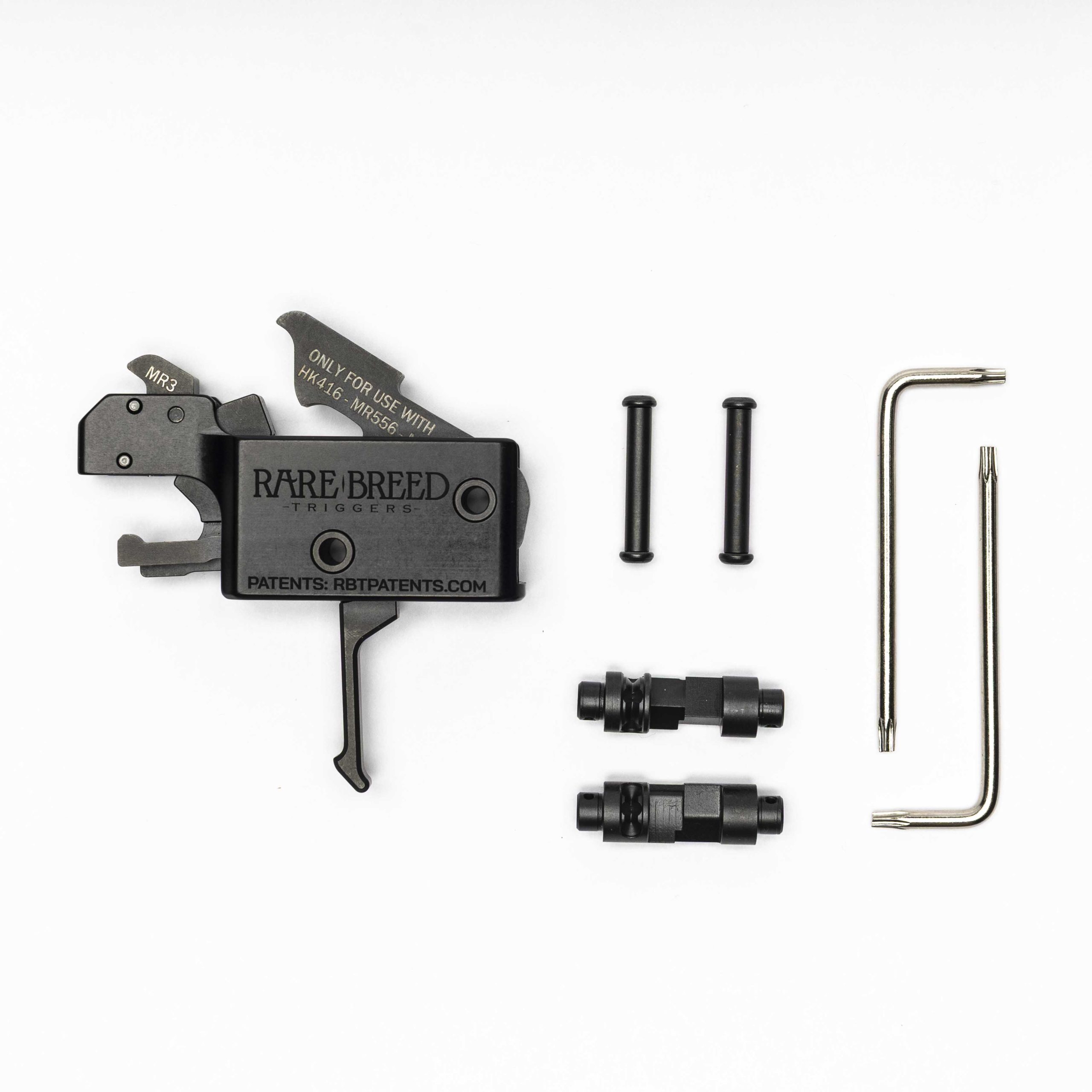 Take your HK MR223 and HK MR556 to the next level with the official Rare Breed Triggers FRT-MR3™. This drop-in, duty-grade 3-position Forced Reset Trigger (Safe/Semi/FRT®) is 100% manufactured and assembled in the USA. The FRT-MR3™ includes a 3-position ambidextrous safety selector and anti-walk pins for a secure, hassle-free installation.